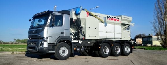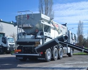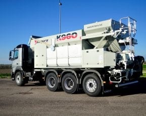 - K960 este o stație mobilă de dozare capabilă să producă beton, șapă, mortar, asfalt rece și beton armat cu fibre