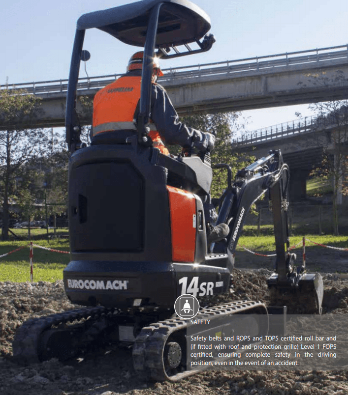 14SR, raza de balansare spate redusă, este compactă, dar incredibil datorită tractării extinse. Pompa cu debit variabil asigură distribuirea corectă a puterii: mișcări mai fluide la controalele opeatorului.Practice și rapide, scaunele rabatabile permit accesul la piesele de service în câteva secunde și, datorită încuietorilor mecanice, întreținerea poate fi efectuată în deplină siguranță.Comenzile de balansare și sistemul hidraulic auxiliar sunt controlate de manete electro-hidraulice proporționale precise și ușor de utilizat, poziționate pe joystick.Practice și rapide, scaunele rabatabile permit accesul la piese de service în câteva secunde și, datorită încuietorilor mecanice, întreținerea poate fi efectuată în deplină siguranță.Pompa cu debit variabil asigură întotdeauna puterea corectă de putere: mișcări mai fluide și reactivitate extremă la controalele operatorului.