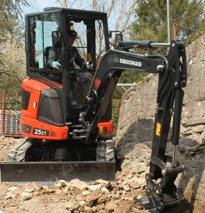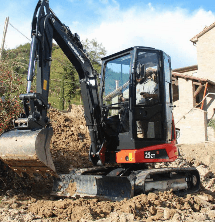 25ZT, coadă zero, se poate roti în interiorul propriei lățimi a șinei, chiar și atunci când ușa cabinei este deschisă. Datorită adevăratei cozi zero, operatorul nu trebuie să verifice spațiul de manevră în timpul operațiunilor de excavare. Dimensiunile compacte fac ca mașina să fie potrivită pentru încărcare pe o remorcă, făcând posibilă transportarea de asemenea a echipamentelor și a accesoriilor.Pentru o funcționare rapidă și ușoară a mașinii, comenzile de înclinare și comenzile auxiliare ale sistemului hidraulic sunt amplasate pe joystick-uri.Dimensiunile compacte și greutatea totală sub 2,5 tone fac ca mașina să fie potrivită pentru încărcare pe o remorcă, ceea ce face posibilă transportarea unei game complete de echipamente și accesorii.Integrarea rezervorului de combustibil în balastul din spate permite instalarea unei cabine spațioase, dar încă compacte. Acest lucru îl face o mașină unică în categoria sa.