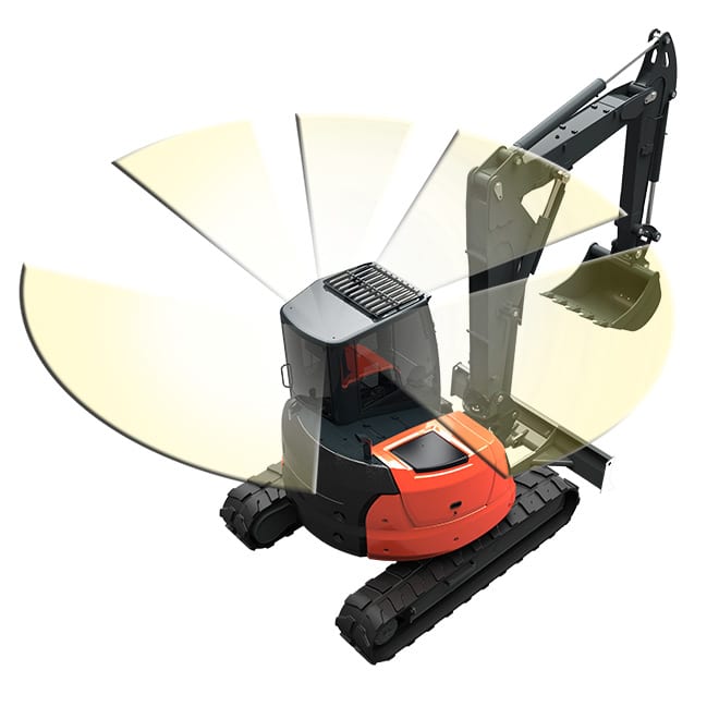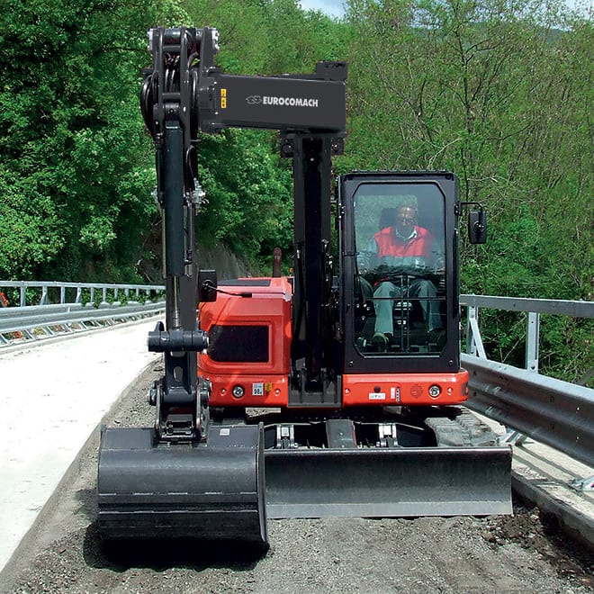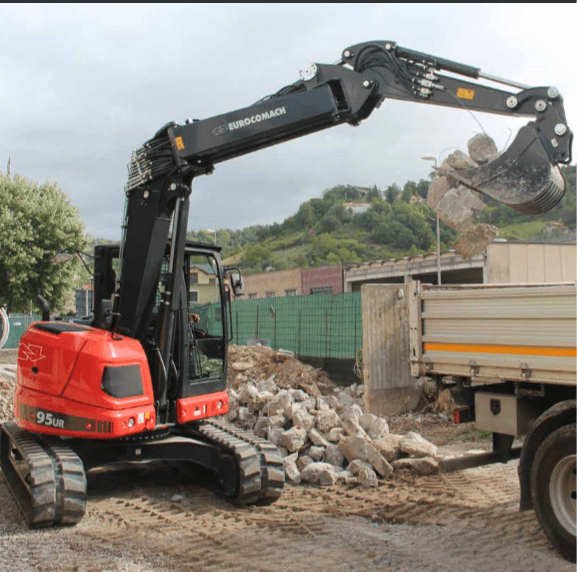 Adevărata coadă zero, 95 UR este proiectată cu un braț off-set. Datorită celor patru tipuri de arme, gama de excavatoare de 8,5 până la 10 tone este potrivită pentru orice loc de muncă: putere nelimitată și versatilitate.Acest tip de braț este util în operațiunile de excavare laterală, datorită vizualizării pe geam a echipamentului. De asemenea, permite o creștere a zonei de lucru, fără a fi necesară mutarea mașinii.Designul special al caroseriei și al structurilor de protecție oferă operatorului un câmp vizual larg, permițând controlul ușor al piesei trase în față.Toate modelele de 8-10 tone sunt echipate cu un motor de căldură laterală: acest lucru permite creșterea dimensiunii cabinei. Ventilatorul suflantei îmbunătățește răcirea motorului, făcând cabina mai rece și mai liniștită pentru un confort mai mare al operatorului.