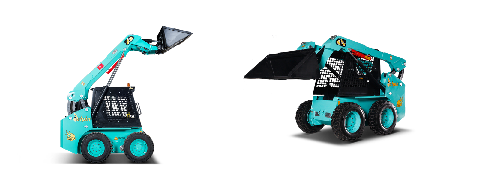 Mini încărcătoarele Alpin sunt proiectate pentru a fi simple, puternice, durabile și rapide. Cu debitul hidraulic mare asigurat de motorul puternic si pompa hidraulica de mare capacitate, mini incarcatoarele Alpin fac față cu brio condițiilor dificile de lucru. Pot fi folosit în lucrări multifuncționale cu ajutorul unor atașamente ușor de montat și demontat. Toate modelele sunt controlate prin joystick (hidraulic) și nu au componente electronice. Este de lungă durată și funcționează fără probleme în toate condițiile.