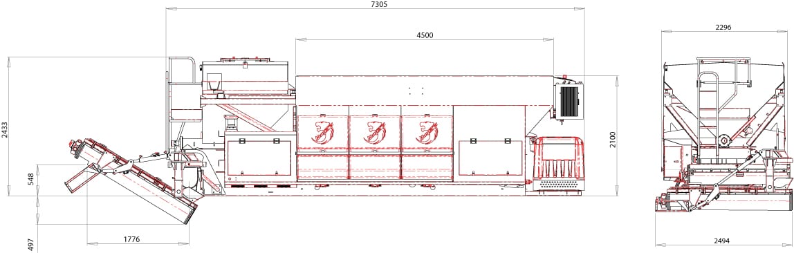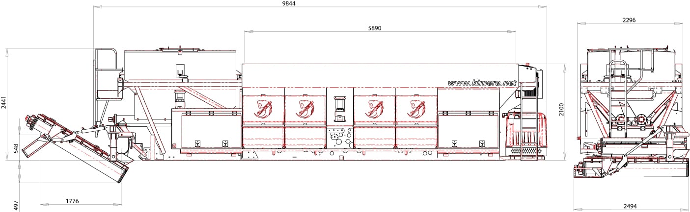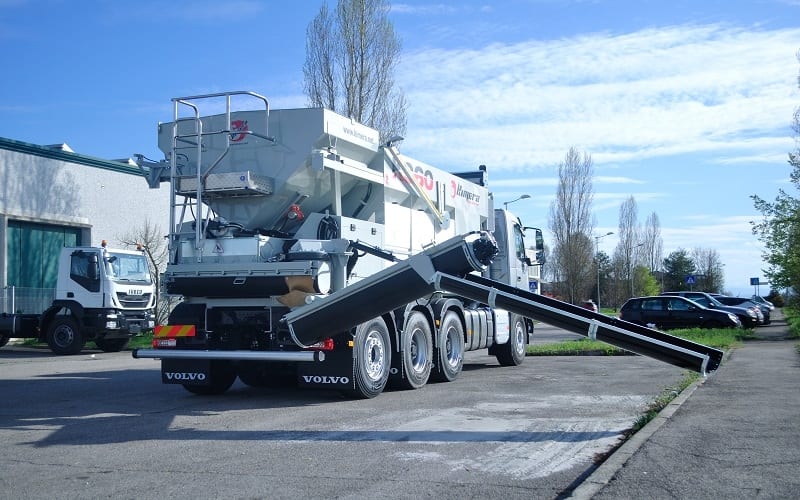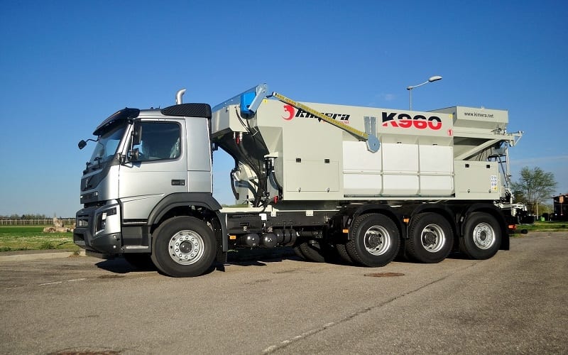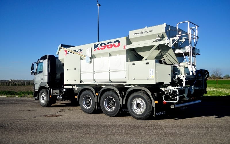 K960 este o stație mobilă de dozare capabilă să producă beton, șapă, mortar, asfalt rece și beton armat cu fibre, după cum este cerut de către utilizator. Stația transportă materialele neamestecate în compartimente separate astfel încât amestecul se poate face atunci când este necesar pe șantier, evitând risipa și riscul legat de betonul gata amestecat. Kimera K960 este echipată cu un sistem de cântărire a încărcăturii, atât pentru ciment cât și pentru fiecare material inert, care asigură design-uri precise și repetabile ale mixului. Amestecul final este furnizat de 2 filiere continue situate în partea din față a stației, dintre care una se rotește orizontal la 180 ° și poate fi înclinată până la 35 ° pentru a crește înălțimea de descărcare. Stația este echipată cu 2 benzi transportoare independente pentru livrarea a 2 agregate diferite, această caracteristică permite operatorului, dacă este necesar, să aleagă doar una dintre cele 2 agregate; de exemplu pentru a produce șapă în loc de beton. K960 poate fi montat pe camion, remorcă, semiremorcă, cărucior feroviar sau oricare altul vehicul mobil.Mobilitatea și versatilitatea sunt principalele puncte forte care fac K9 cea mai bună alegere pentru companiile din construcții, lucrări de drumuri, infrastructura, betonul de amestec, sectorul de reciclare și închiriere.Cu Kimera K960 veți obține beton proaspăt de înaltă calitate, cu amestecul mixului pe care îl aveți nevoie la cantitatea și timpul dorit.